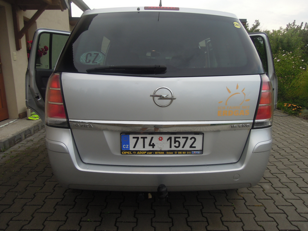 Opel Zafira CNG 1.6 16V, 69kw, pravidelně udržované, garážované, servisované, nekuřák, nehavarované, stříbrná metalíza, velmi levný provoz na CNG (zemní plyn), cca 1,30-1,50 Kč na 1 km+ benzínová nádrž, 5-7 míst, tažné zařízení, sada zimních pneumatik Nokian na discích ABS, posilovač řízení, klimatizace, 6 airbagů, imobilizér, střešní nosiče- hagusy, automatické svícení, multifunkční volant, tempomat, CD přehrávač, nastavitelný volant, venkovní teploměr, dálkové centrální zamykání, originál autorádio, výškově nastavitelné sedadlo řidiče, dělená zadní sedadla, palubní počítač, zadní stěrač nové brzdy, svíčky, zánovní pneumatiky Continental, 2.majitel, koupeno přímo v Opelu v Německu, servisní kniha. STK platná do 2/2021. Poctivě najeté kilometry, VIN: W0L0AHM7572110779 vozidlo je plně funkční, důvod prodeje: změna rodinné situace
