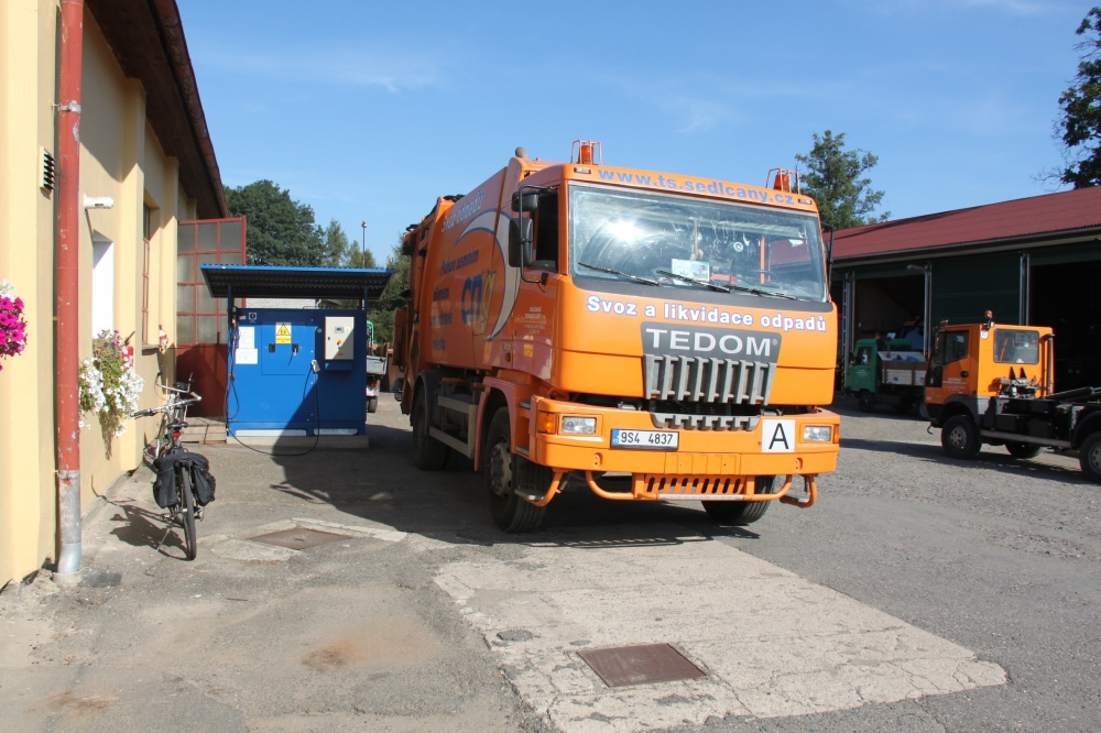 O svoz komunálního odpadu ve spádovém území města Sedlčany se již řadu let stará městem vlastněná společnost Sedlčanské technické služby, s.r.o. Odpad sváží z oblasti čítající 18 000 obyvatel a již od roku 2009 úspěšně provozuje vedle klasického nákladního vozu na naftu také druhý, značky TEDOM, na zemní plyn.
