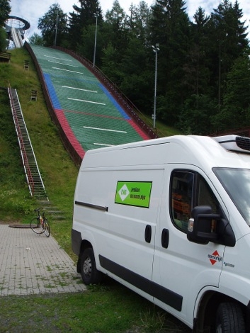 Za panem Lojdou, ředitelem logistiky jsme se vypravili do sídla společnosti v Lomnici nad Popelkou. S CNG se firma poprvé prakticky seznámila v roce 2006, kdy spíše na zkoušku pořídili Fiat Doblo. Po třech letech bezproblémového provozu se management rozhodl zakoupit další, větší vůz - Mercedes Benz Sprinter. Přesvědčili je zejména nízké náklady na pohonné hmoty - u Dobla se po pěti letech a 210 000 najetých km jedná dokonce o 1,06 Kč / km! Sprinter má dnes od roku 2009 najeto bezproblémových 390 000 km.